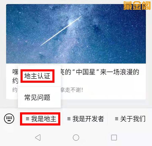 4、点击图中【我是地主】,在打开的菜单中,点击【地主认证】。
